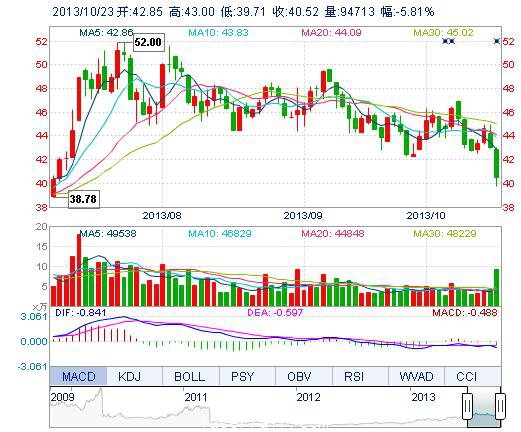 | 今 開: | 42.85 | 成交量: | 9.47萬手 | 振 幅: | 7.65% |