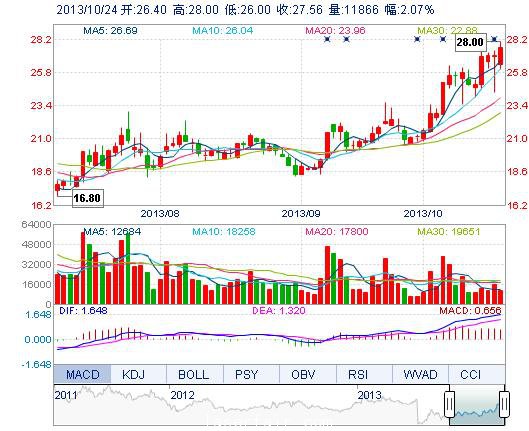 | 最 高: | 28.00 | 成交額: | 3225.58萬元 | 換手率: | 5.48% |