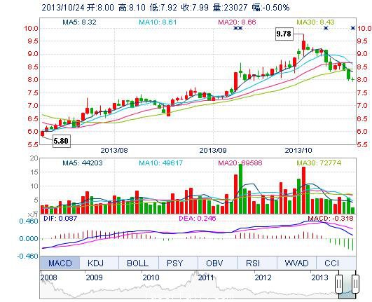 | 今 開: | 8.00 | 成交量: | 2.30萬手 | 振 幅: | 2.24% |