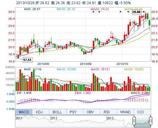 | 今 開: | 26.02 | 成交量: | 1.06萬手 | 振 幅: | 9.64% |