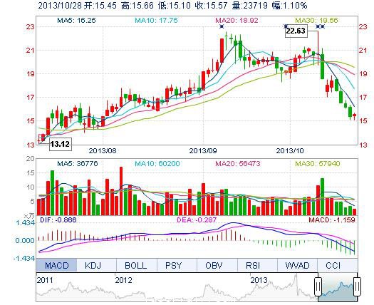 | 今 開: | 15.45 | 成交量: | 2.37萬手 | 振 幅: | 3.64% |
