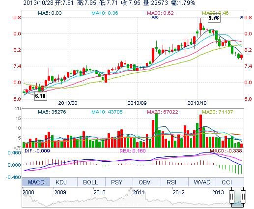| 今 開: | 7.81 | 成交量: | 2.26萬手 | 振 幅: | 3.07% |
