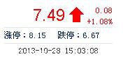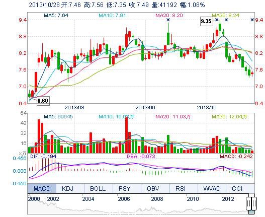 今開: 7.46 成交量: 4.12萬(wan) 手 振幅: 2.83% 最高: 7.56 成交額: 3075.33萬(wan) 元 換手率: 0.94% 最低: 7.35 總市值: 32.72億(yi) 市淨率: 2.39 昨收: 7.41 流通市值: ...
