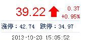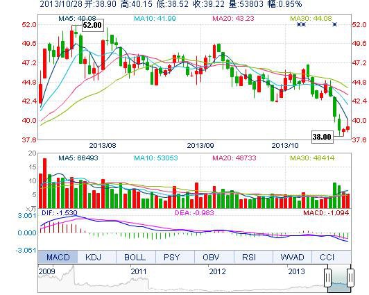 今開: 38.90 成交量: 5.38萬(wan) 手 振幅: 4.20% 最高: 40.15 成交額: 2.12億(yi) 元 換手率: 1.87% 最低: 38.52 總市值: 116.74億(yi) 市淨率: 7.69 昨收: 38.85 流通市值...