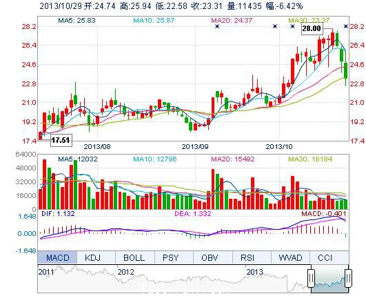 | 今 開: | 24.74 | 成交量: | 1.14萬手 | 振 幅: | 13.49% |