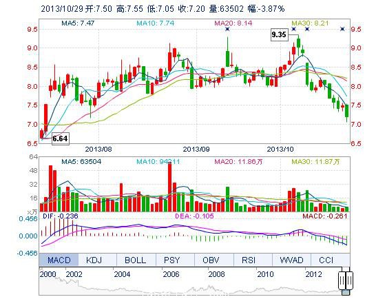 今開: 7.50 成交量: 6.35萬(wan) 手 振幅: 6.68% 最高: 7.55 成交額: 4619.90萬(wan) 元 換手率: 1.45% 最低: 7.05 總市值: 31.45億(yi) 市淨率: 2.30 昨收: 7.49 流通市值: ...