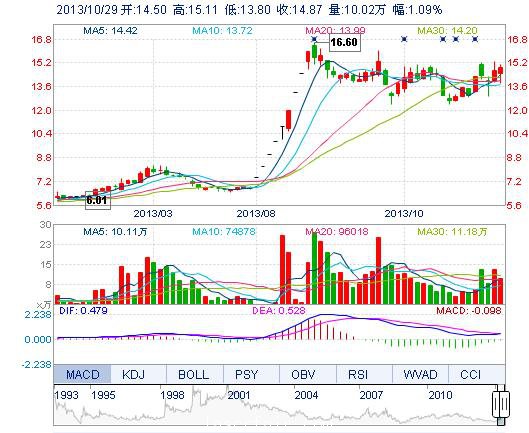 | 今 開: | 14.50 | 成交量: | 10.02萬手 | 振 幅: | 8.91% |
