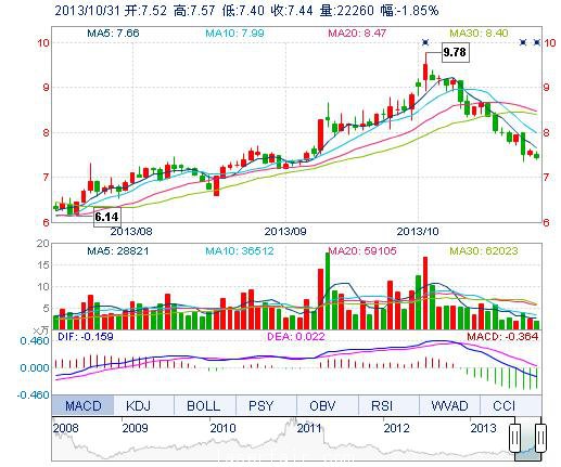 | 今 開: | 7.52 | 成交量: | 2.23萬手 | 振 幅: | 2.24% |