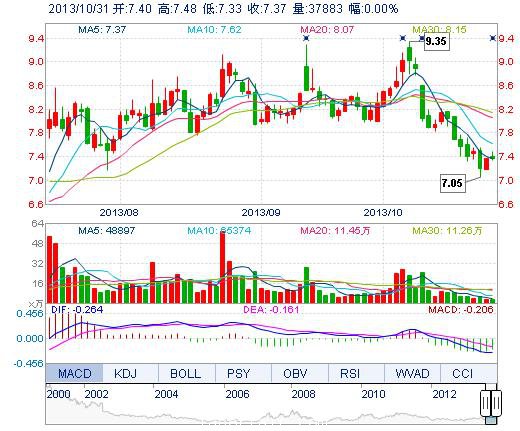 今開: 7.40 成交量: 3.79萬(wan) 手 振幅: 2.04% 最高: 7.48 成交額: 2801.29萬(wan) 元 換手率: 0.87% 最低: 7.33 總市值: 32.19億(yi) 市淨率: 2.36 昨收: 7.37 流通市值: ...