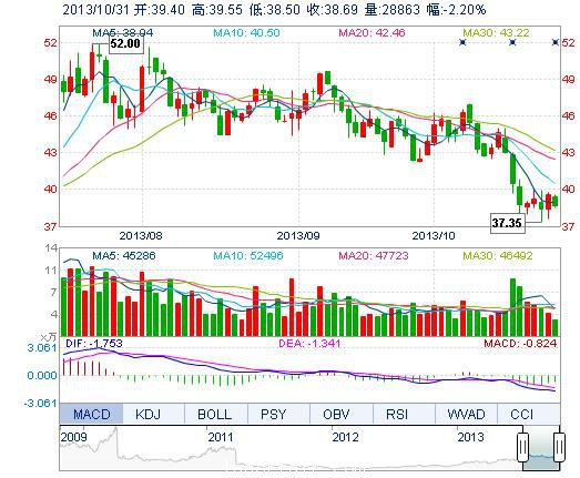 今開: 39.40 成交量: 2.89萬(wan) 手 振幅: 2.65% 最高: 39.55 成交額: 1.12億(yi) 元 換手率: 1.00% 最低: 38.50 總市值: 115.16億(yi) 市淨率: 7.58 昨收: 39.56 流通市值...
