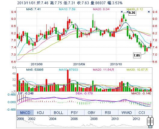 | 今 開: | 7.46 | 成交量: | 8.69萬手 | 振 幅: | 5.97% |