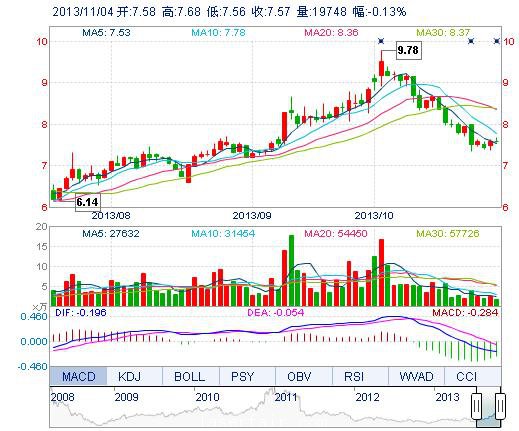 | 今 開: | 7.58 | 成交量: | 1.97萬手 | 振 幅: | 1.58% |