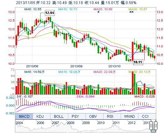 今開: 10.32 成交量: 15.01萬(wan) 手 振幅: 2.99% 最高: 10.49 成交額: 1.55億(yi) 元 換手率: 1.59% 最低: 10.18 總市值: 109.04億(yi) 市淨率: 3.12 昨收: 10.38 流通市值...