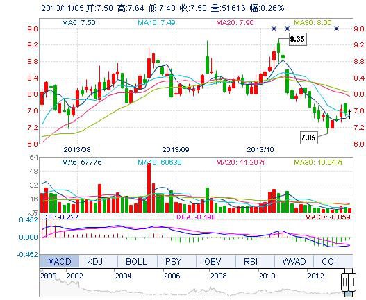 | 今 開: | 7.58 | 成交量: | 5.16萬手 | 振 幅: | 3.17% |
