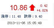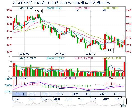 今開: 10.50 成交量: 52.04萬(wan) 手 振幅: 6.61% 最高: 11.18 成交額: 5.69億(yi) 元 換手率: 5.50% 最低: 10.49 總市值: 113.42億(yi) 市淨率: 3.25 昨收: 10.44 流通市值...