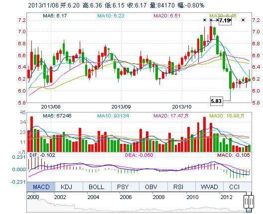 | 今 開: | 6.20 | 成交量: | 8.42萬手 | 振 幅: | 3.38% |