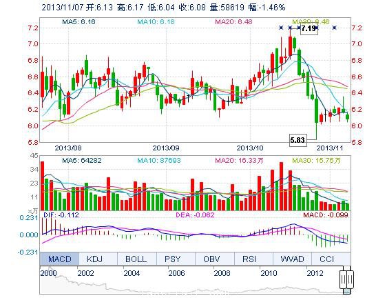 | 今 開: | 6.13 | 成交量: | 5.86萬手 | 振 幅: | 2.11% |