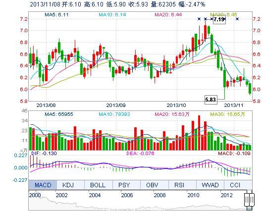 今開: 6.10 成交量: 6.23萬(wan) 手 振幅: 3.29% 最高: 6.10 成交額: 3739.60萬(wan) 元 換手率: 0.70% 最低: 5.90 總市值: 52.84億(yi) 市淨率: 1.96 昨收: 6.08 流通市值: ...