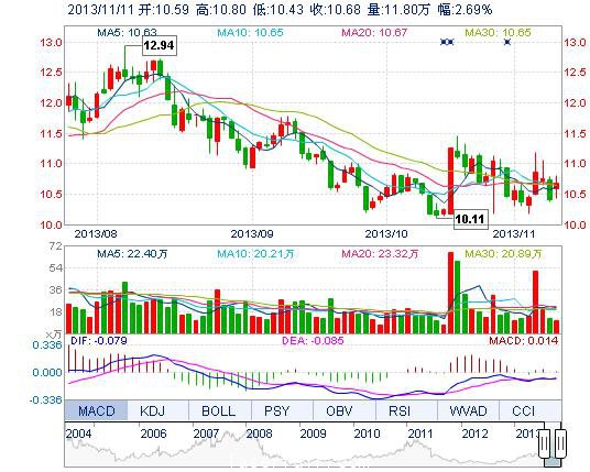 | 今 開: | 10.59 | 成交量: | 11.80萬手 | 振 幅: | 3.56% |