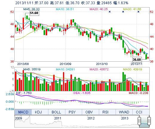 今開: 37.00 成交量: 2.95萬(wan) 手 振幅: 2.48% 最高: 37.61 成交額: 1.10億(yi) 元 換手率: 1.03% 最低: 36.70 總市值: 111.12億(yi) 市淨率: 7.32 昨收: 36.73 流通市值...