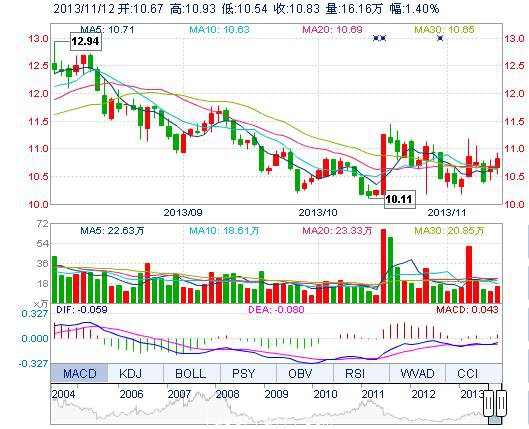 今開: 10.67 成交量: 16.16萬(wan) 手 振幅: 3.65% 最高: 10.93 成交額: 1.74億(yi) 元 換手率: 1.71% 最低: 10.54 總市值: 113.11億(yi) 市淨率: 3.24 昨收: 10.68 流通市值...