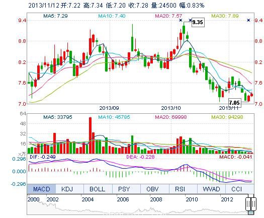 | 今 開: | 7.22 | 成交量: | 2.45萬手 | 振 幅: | 1.94% |