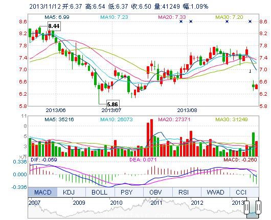 | 今 開: | 6.37 | 成交量: | 4.12萬手 | 振 幅: | 2.64% |