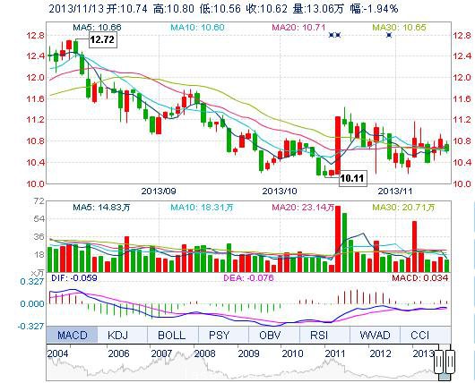 今開: 10.74 成交量: 13.06萬(wan) 手 振幅: 2.22% 最高: 10.80 成交額: 1.39億(yi) 元 換手率: 1.38% 最低: 10.56 總市值: 110.91億(yi) 市淨率: 3.17 昨收: 10.83 流通市值...