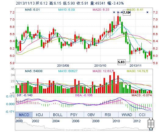 | 今 開: | 6.12 | 成交量: | 4.93萬手 | 振 幅: | 4.08% |