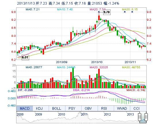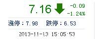 | 今 開: | 7.23 | 成交量: | 2.11萬手 | 振 幅: | 2.62% |