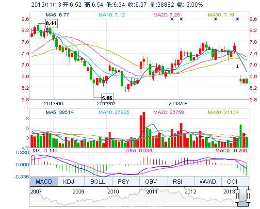 | 今 開: | 6.52 | 成交量: | 2.89萬手 | 振 幅: | 3.08% |