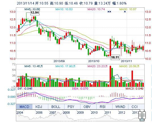 今開: 10.55 成交量: 13.24萬(wan) 手 振幅: 4.14% 最高: 10.90 成交額: 1.42億(yi) 元 換手率: 1.40% 最低: 10.46 總市值: 112.69億(yi) 市淨率: 3.22 昨收: 10.62 流通市值...