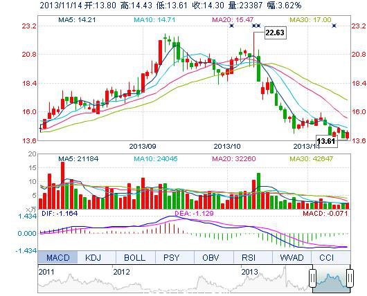 | 今 開: | 13.80 | 成交量: | 2.34萬手 | 振 幅: | 5.94% |