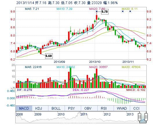 今開: 7.16 成交量: 2.33萬(wan) 手 振幅: 3.49% 最高: 7.30 成交額: 1682.36萬(wan) 元 換手率: 0.85% 最低: 7.05 總市值: 20.81億(yi) 市淨率: 3.34 昨收: 7.16 流通市值: ...
