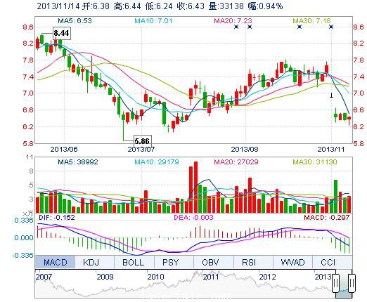 | 今 開: | 6.38 | 成交量: | 3.31萬手 | 振 幅: | 3.14% |