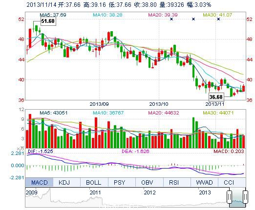 | 最 高: | 39.16 | 成交額: | 1.52億元 | 換手率: | 1.37% |