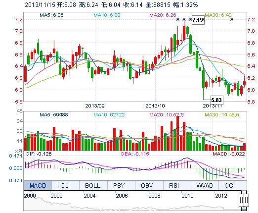 | 今 開: | 6.08 | 成交量: | 8.88萬手 | 振 幅: | 3.30% |