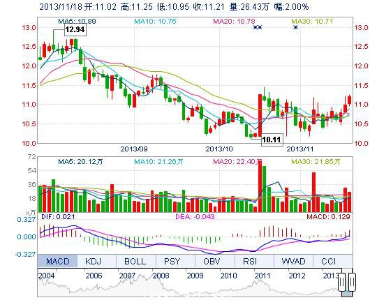 今開: 11.02 成交量: 26.43萬(wan) 手 振幅: 2.73% 最高: 11.25 成交額: 2.94億(yi) 元 換手率: 2.79% 最低: 10.95 總市值: 117.08億(yi) 市淨率: 3.35 昨收: 10.99 流通市值...
