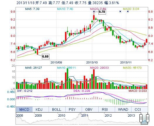 | 今 開: | 7.49 | 成交量: | 3.82萬手 | 振 幅: | 3.74% |