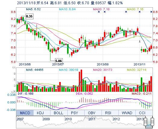 | 今 開: | 6.54 | 成交量: | 6.95萬手 | 振 幅: | 4.71% |