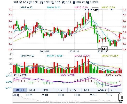 | 今 開: | 6.34 | 成交量: | 8.97萬手 | 振 幅: | 2.21% |