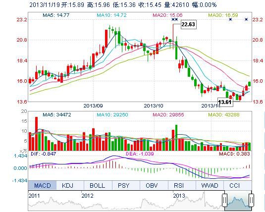| 今 開: | 15.89 | 成交量: | 4.26萬手 | 振 幅: | 3.88% |