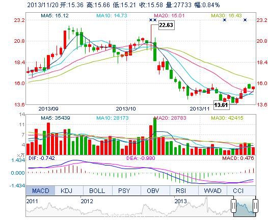 | 今 開: | 15.36 | 成交量: | 2.77萬手 | 振 幅: | 2.91% |