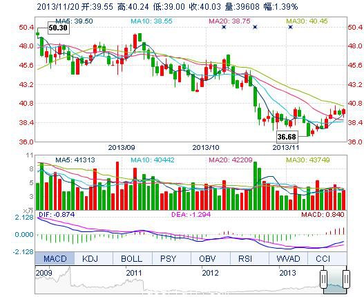 | 最 高: | 40.24 | 成交額: | 1.58億元 | 換手率: | 1.38% |