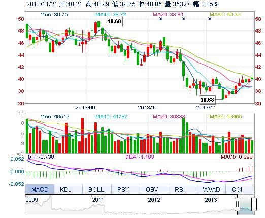 | 今 開: | 40.21 | 成交量: | 3.53萬手 | 振 幅: | 3.35% |
