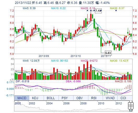 | 今 開: | 6.45 | 成交量: | 11.30萬手 | 振 幅: | 2.95% |