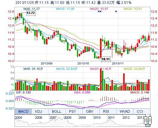 今開: 11.15 成交量: 33.52萬(wan) 手 振幅: 4.04% 最高: 11.60 成交額: 3.83億(yi) 元 換手率: 3.54% 最低: 11.15 總市值: 119.27億(yi) 市淨率: 3.41 昨收: 11.14 流通市值...