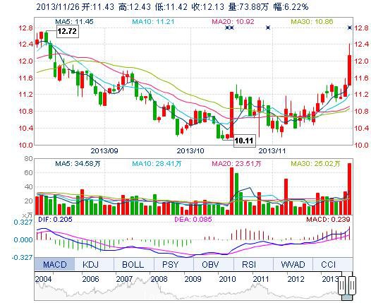 | 最 高: | 12.43 | 成交額: | 8.87億元 | 換手率: | 7.81% |