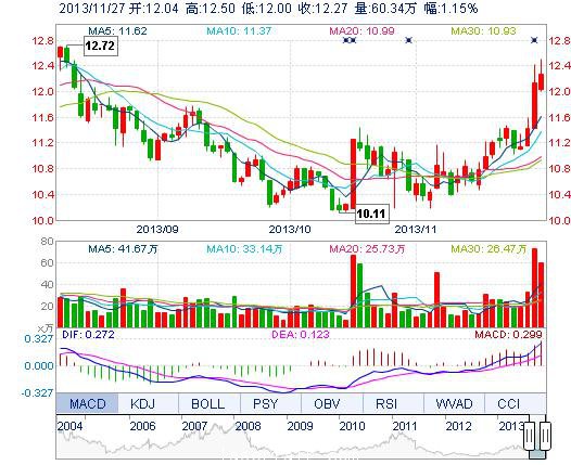 今開: 12.04 成交量: 60.34萬(wan) 手 振幅: 4.12% 最高: 12.50 成交額: 7.44億(yi) 元 換手率: 6.38% 最低: 12.00 總市值: 128.15億(yi) 市淨率: 3.67 昨收: 12.13 流通市值...