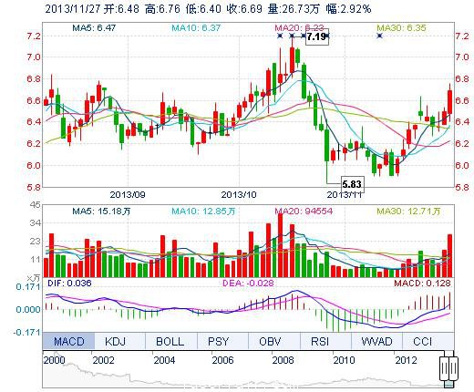 | 今 開: | 6.48 | 成交量: | 26.73萬手 | 振 幅: | 5.54% |